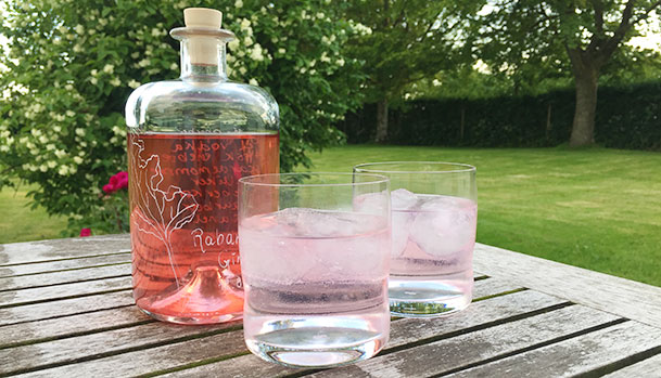 Udgangspunktet for denne gin er vodka, enebær og rabarber. Jeg elsker gin men kan godt finde enebærsmagen i f.eks. en London Dry for kraftig. Jeg ønskede derfor en gin med en flot farve og en mild krydring.