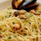 Spaghetti med muslinger, hvidløg, chili og persille. En klassik italiensk ret.